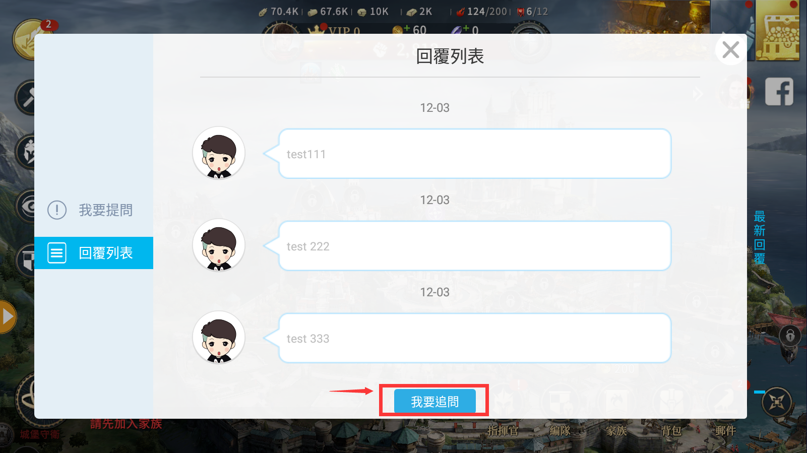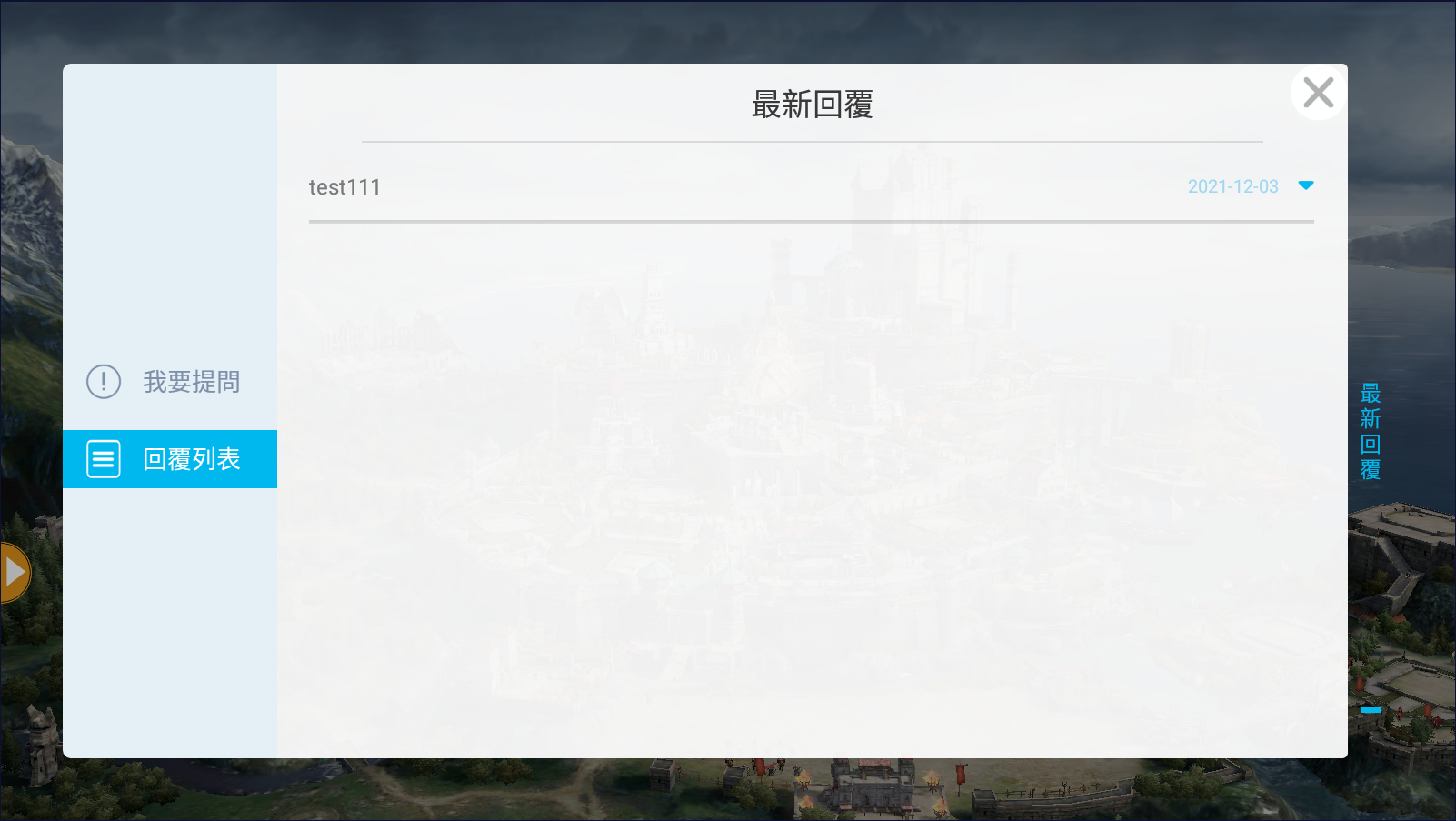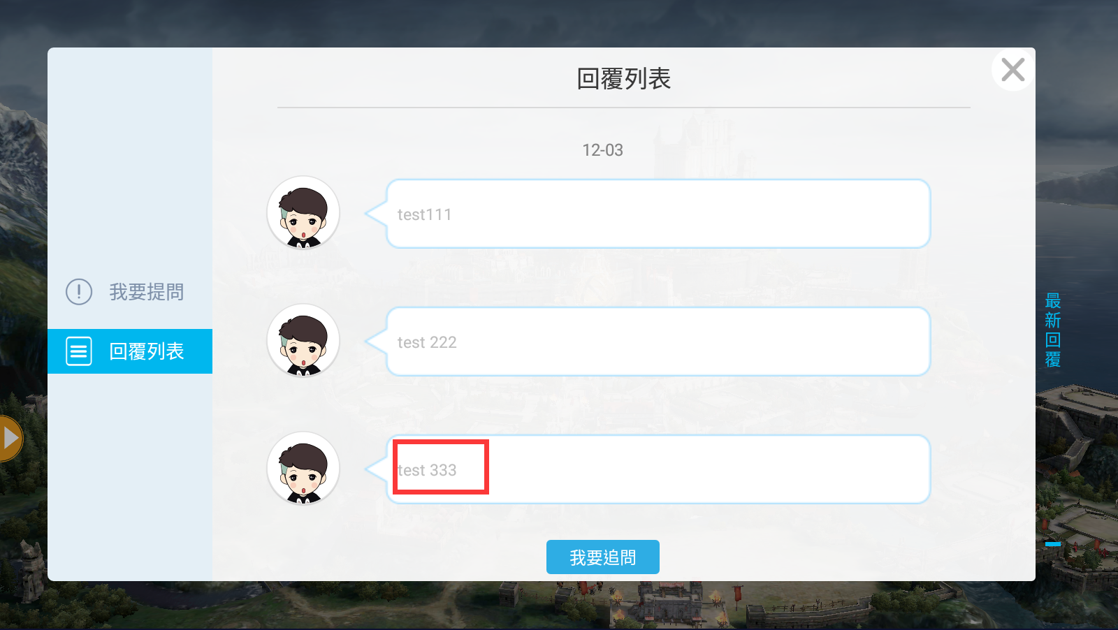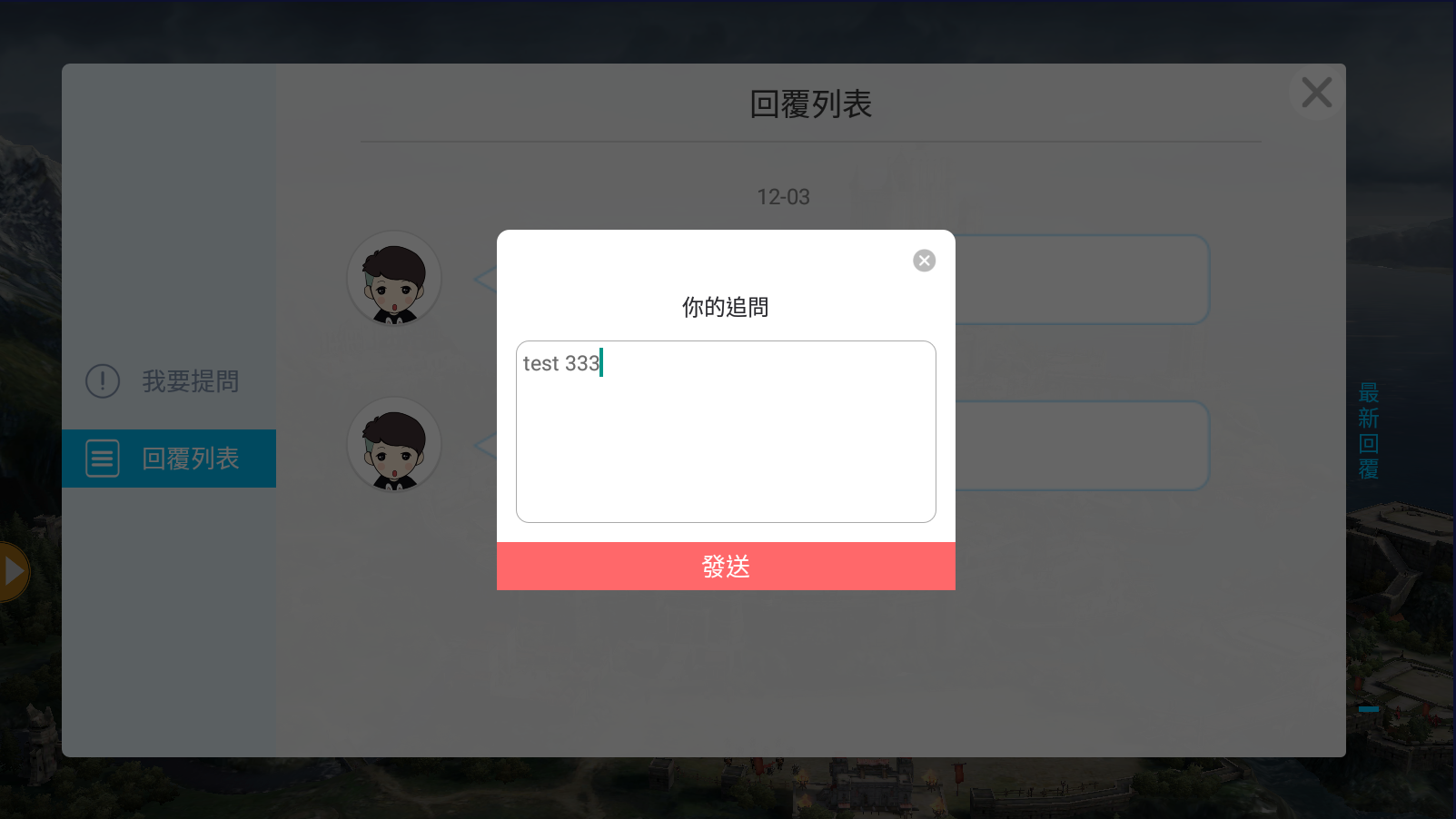 5.問題回報成功後,可至”回覆列表”頁面,等待客服人員進行回覆