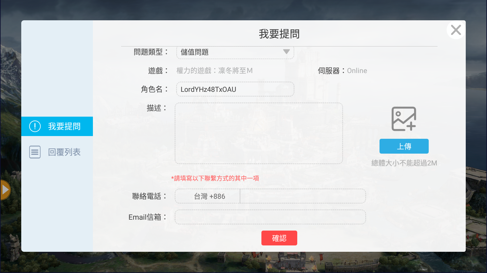 3.進入客服介面後,在”我要提問”的頁面,可以輸入您的問題以及相關聯絡資訊