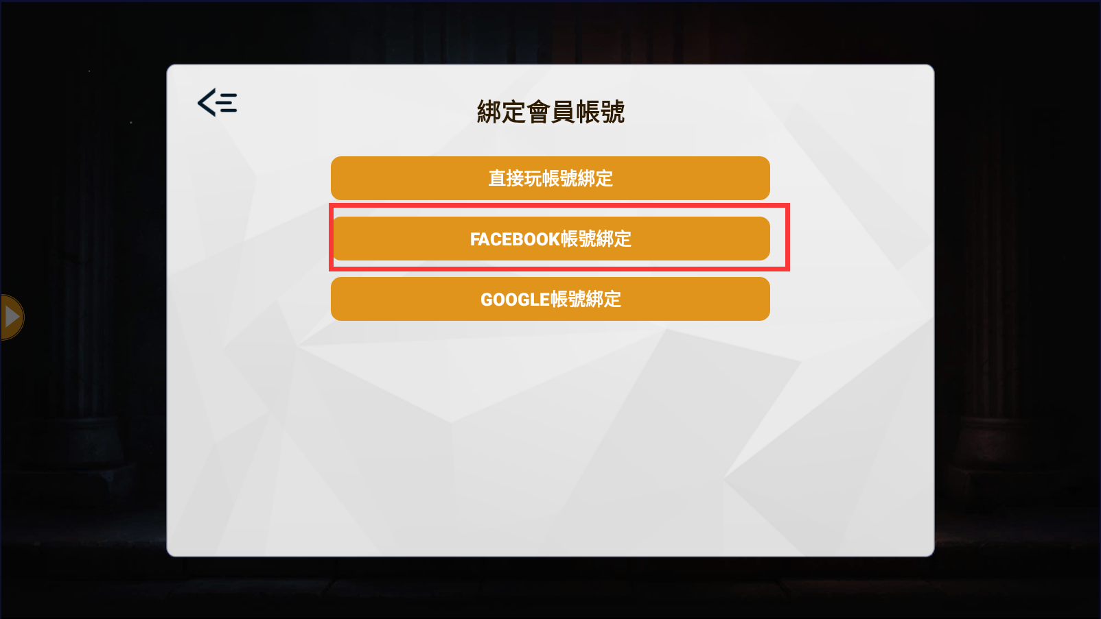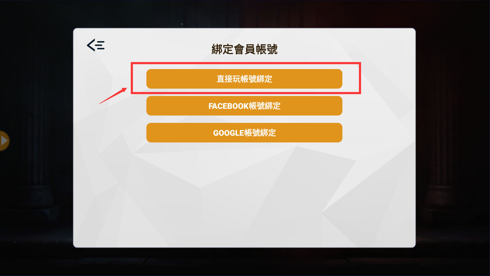 當您點進會員中心後,請您點選【直接玩帳號綁定】