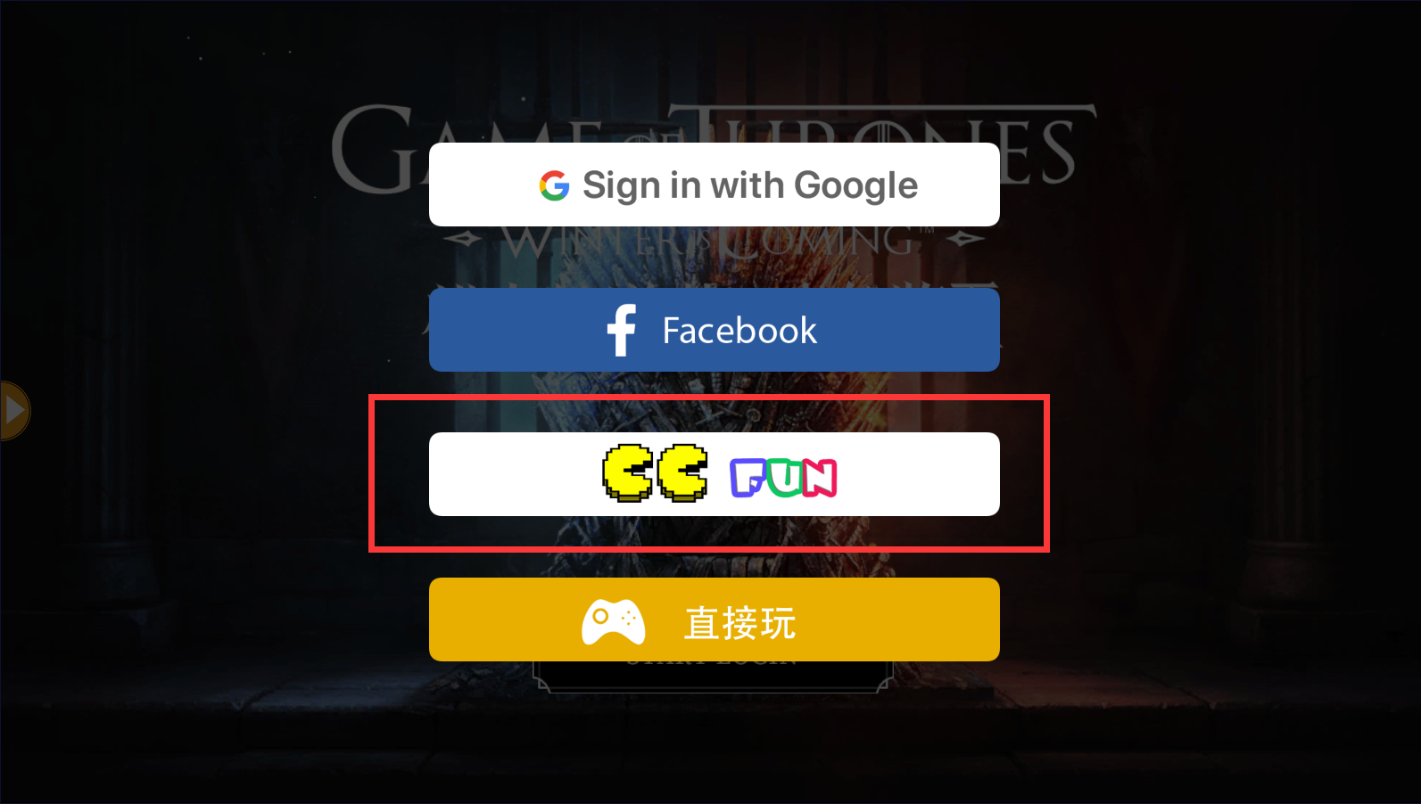 進入遊戲後,點擊【CCFUN會員登入】