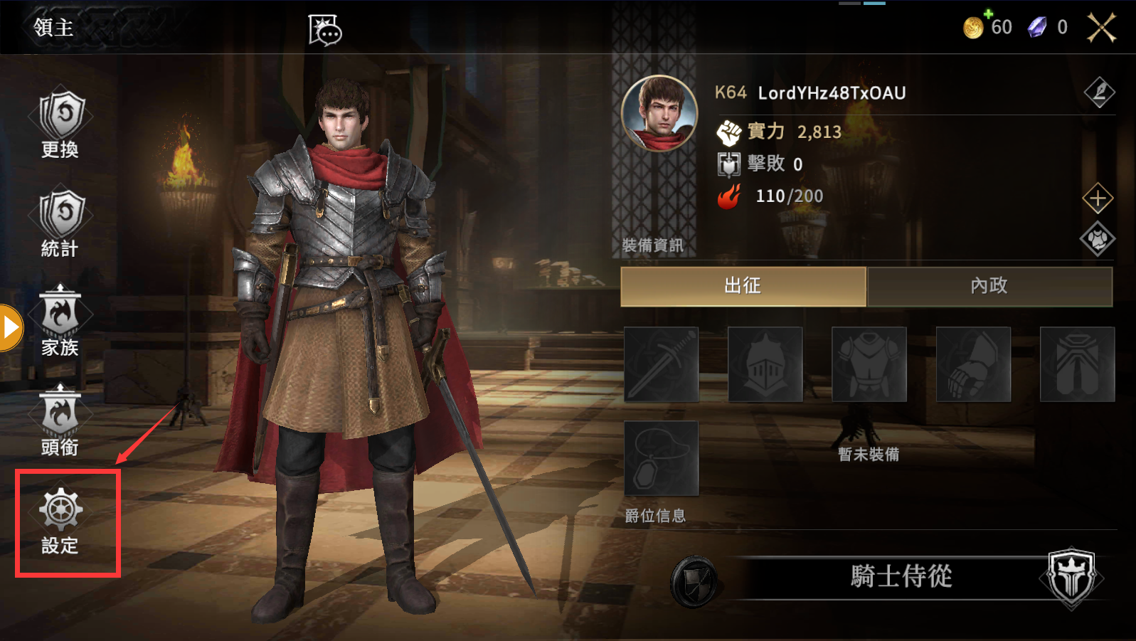 2.點擊後,在領主介面中,點選【設定】