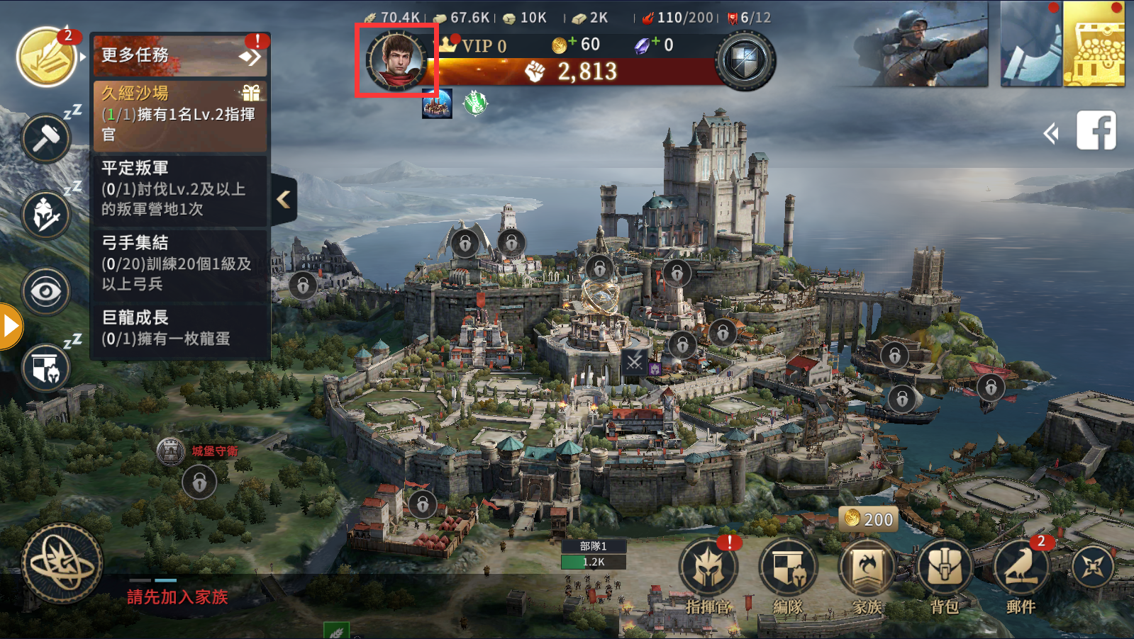 1.進入遊戲後點擊上方【領主頭像圖示】