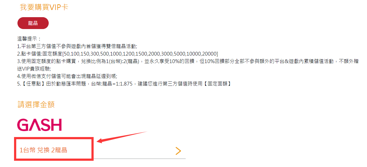 注意:此頁面上方可選擇進行儲值點券額度。