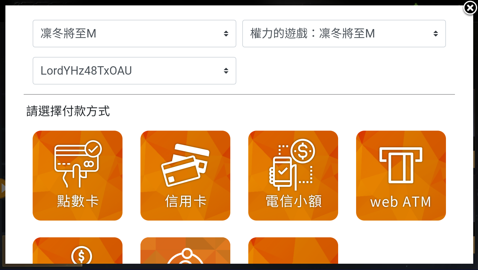 Step 4:選擇您的儲值方式,即可進行儲值。