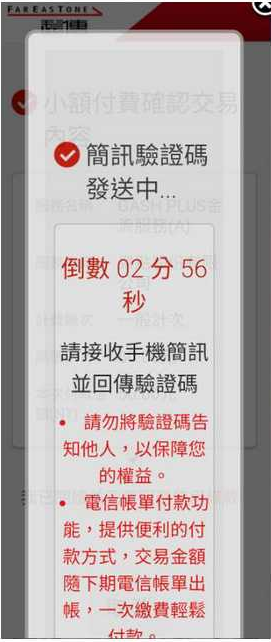 Step 8:取得簡訊的驗證碼後,輸入正確驗證碼,點選確認。
