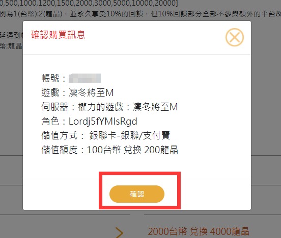 Step 7:輸入正確的會員交易資訊,點選確認。