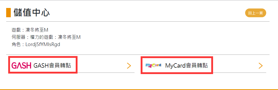 Step 2:選擇GASH或MyCard進行會員轉點。(以Gash台灣為例)
