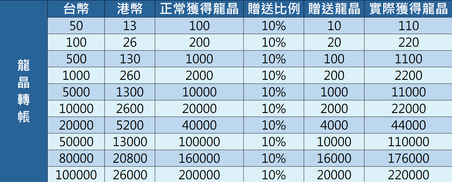 服務專員將在確認您的款項後,於一個工作日內為您發放龍晶唷!