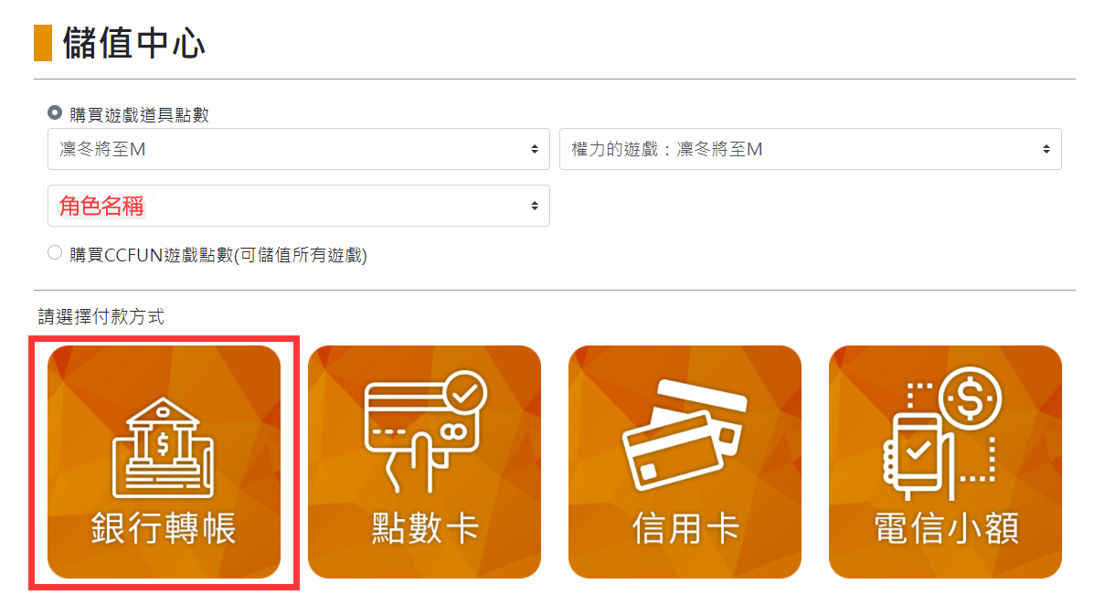Step 2:進入儲值中心後,選擇【銀行轉帳】