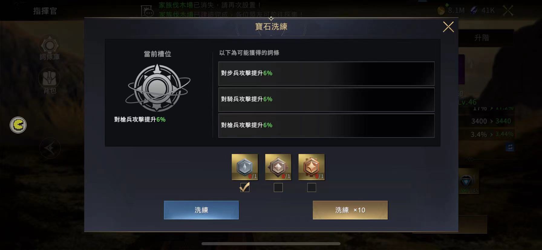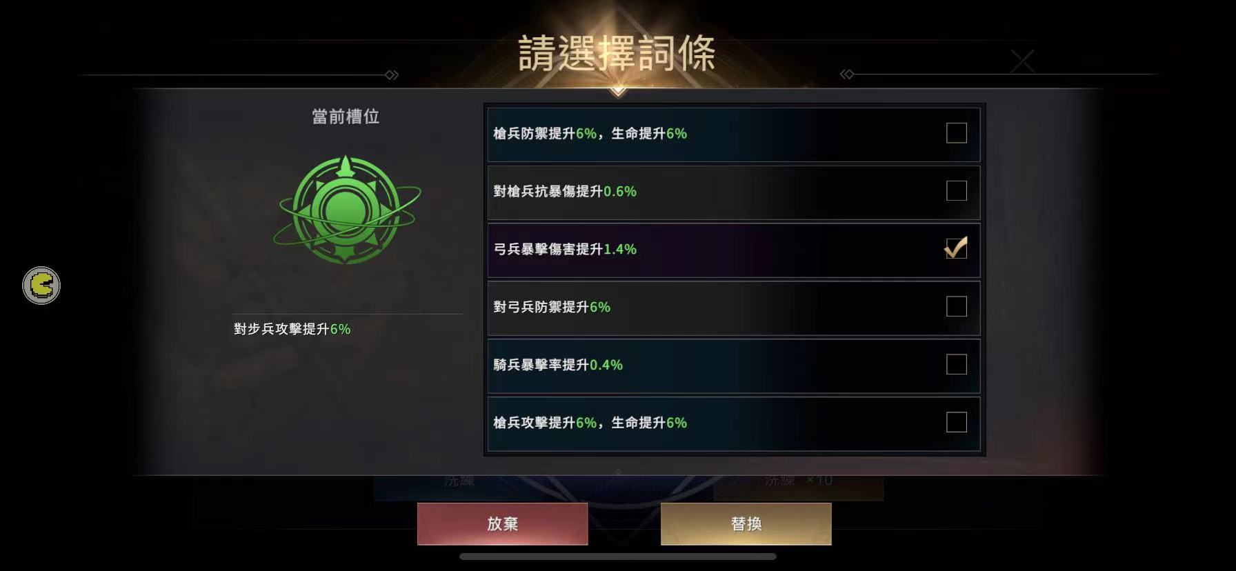 3、各位大人可以選擇單次洗煉,或者十連洗煉;選擇十連洗煉時,您可以於十個詞條內選擇心儀的單個詞條進行替換,