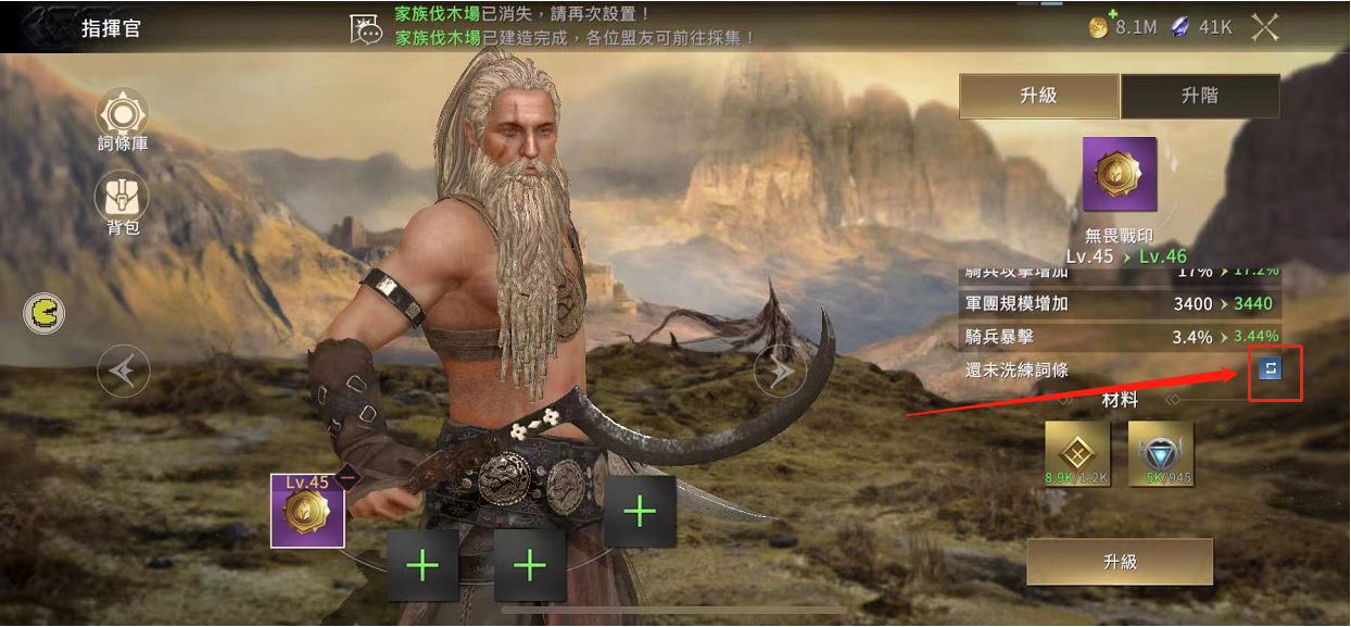 1、「戰印洗煉」開啟條件:將戰印升級至45級並升階至紫品質,將開啟洗煉詞條槽位。