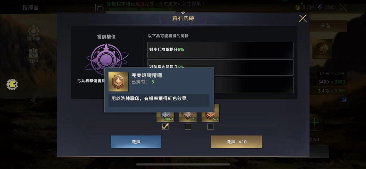 我們接到部分領主詢問:商城已開啟販售熔鑄精鋼,但戰印洗煉系統卻沒有開啟;關於「戰印洗煉」系統,還請各位大人參考以下說明: